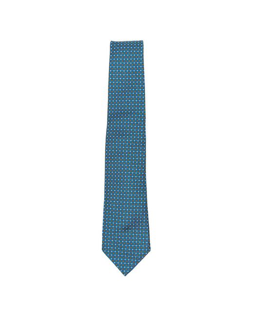 Blue silk geometric pattern pointed tip adjustable fit keeper loop to the rear Size: One Size. Gender: Male. Material:Silk.