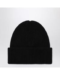 Go to FARFETCHGreen melange effect ribbed knit turn-up brim small logo label Size: One Size. Gender: Female. Material:Wool. Color: green