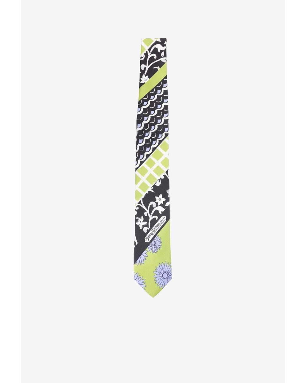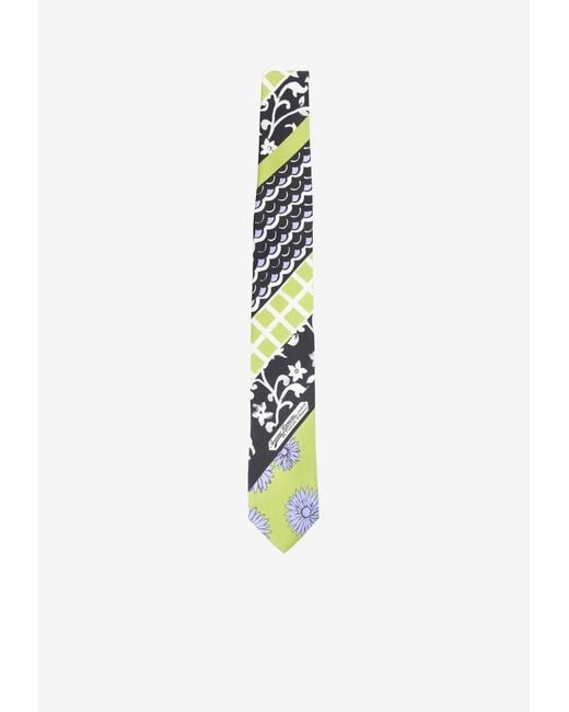 Material: 100% silk. Patchwork silk tie with multi-print design. Classic tie design. Front logo detail Color: white