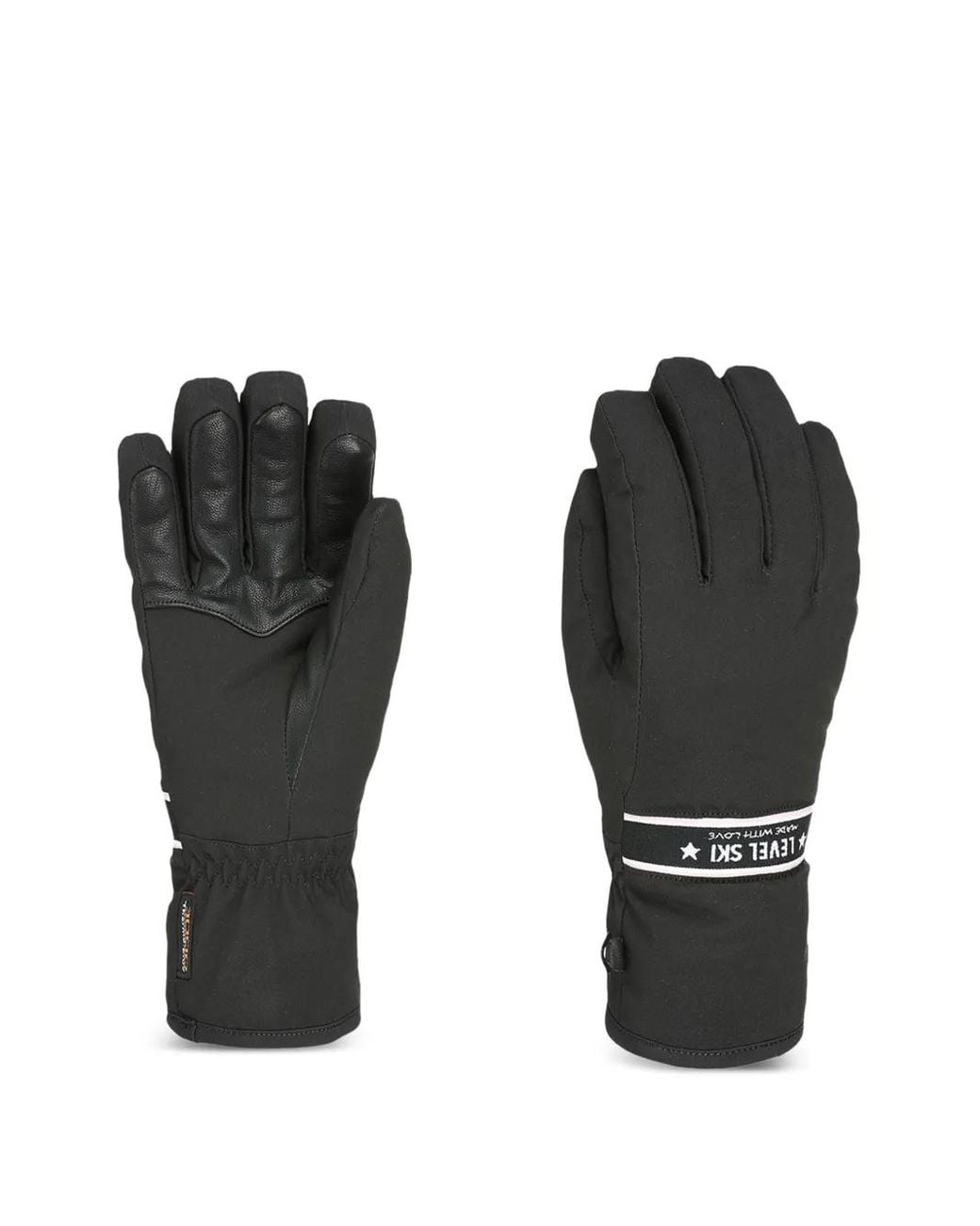 Black elasticated cuff logo detailing wrist strap pull tab Size: L. Gender: Female. Material:Goat Skin/Fabric. Color: black