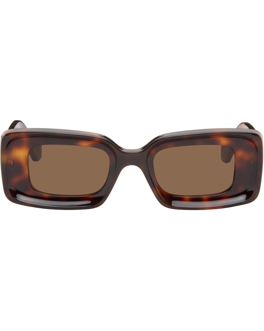 Rectangular tortoiseshell acetate-frame sunglasses. · Brown lenses · 100% UVA/UVB protection, category 3 · Integrated nose pads · Logo hardware at temples · Includes pouch · Size: 46.22 140 Supplier color: Havana