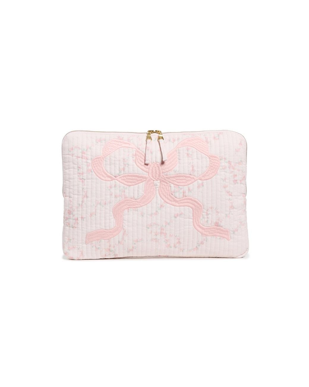 Plain weave. Floral pattern. Embroidered bow. Zip closure. Lining: Cotton. Weight: 10oz / 0.28kg. Imported, India. Measurements: Height: 10.75in / 27.5cm Length: 15.5in / 39.5cm Depth: 1.5in / 4cm Color: pink