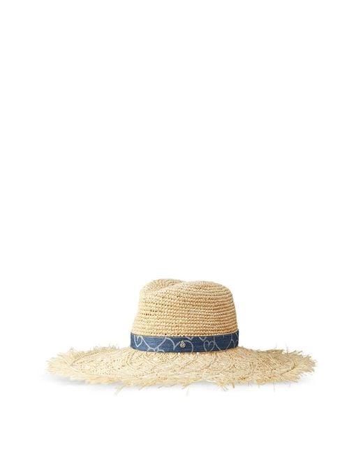 Natural straw construction heart print band frayed brim logo charm Size: S. Gender: Female. Material:Straw/Cotton.