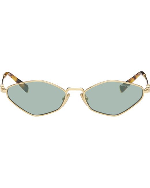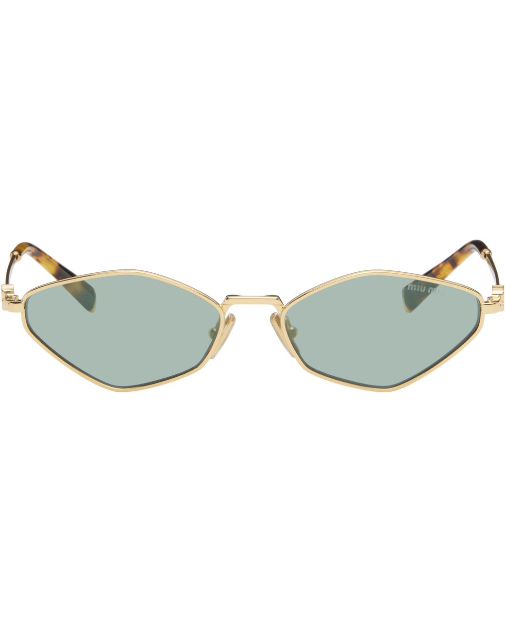 Hexagonal metal-frame sunglasses. · Blue lenses · 100% UVA/UVB protection · Logo etched at lens · Adjustable rubber nose pads · Logo hardware at temples · Acetate temple tips · Includes case · Size: 56.17 140 Supplier color: Gold