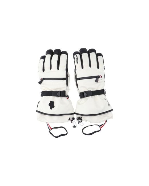 Moncler Grenoble padded gloves in white and black leather '2L 4-way stretch' technical fabric with zip closure, inner pocket, adjustable cuffs, contrast printed logo detail at the front. - Trims: 100% leather Color: white