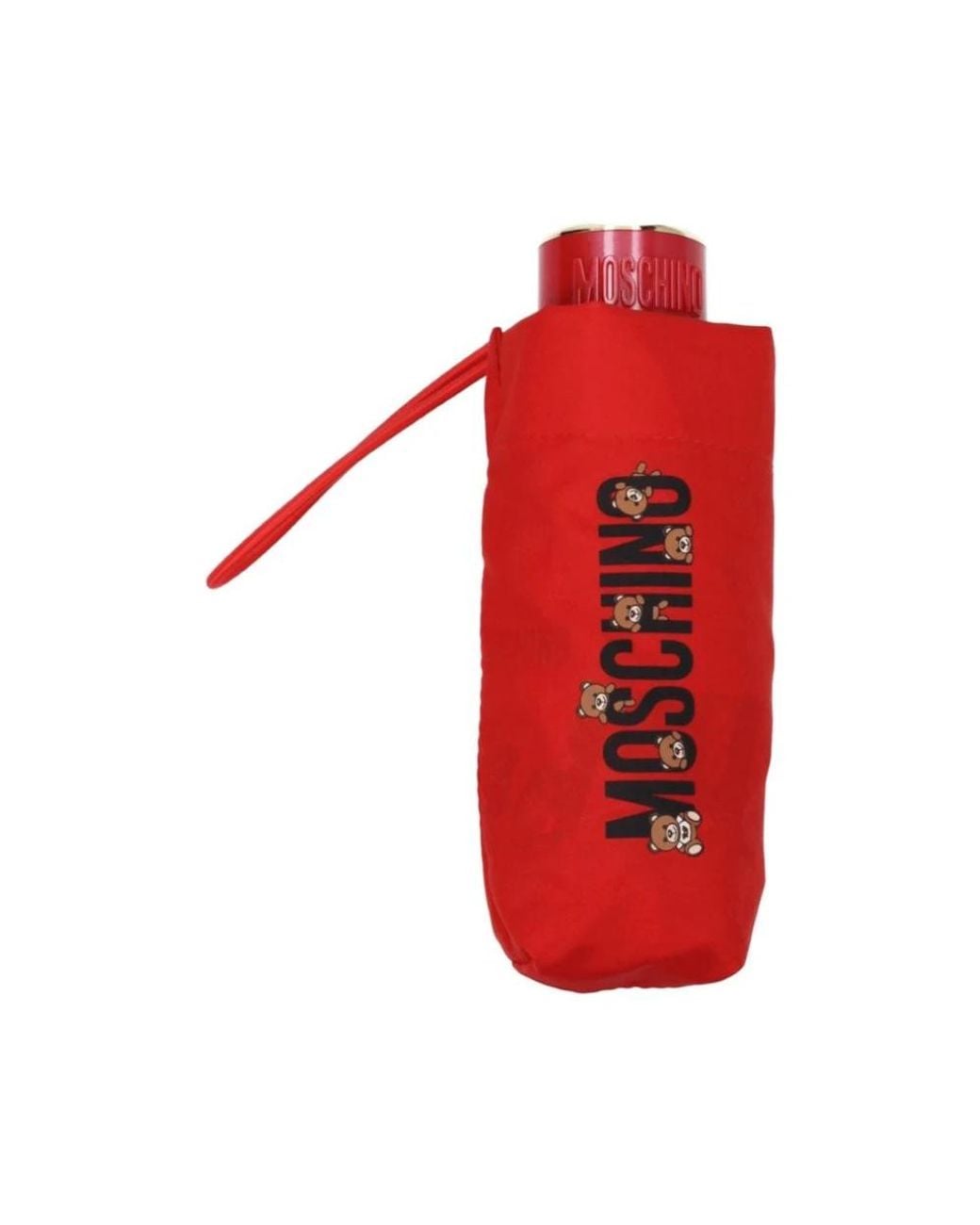 Stay stylish and dry with the Moschino Red Polyester Umbrella, a chic and functional accessory designed for women. Crafted from durable polyester in a vibrant bright red color, this umbrella features a snap closure for easy use, front detail, and a front logo, adding a touch of luxury to your casual ensemble. Ideal for unpredictable weather, this umbrella combines practicality with fashion. Color: red