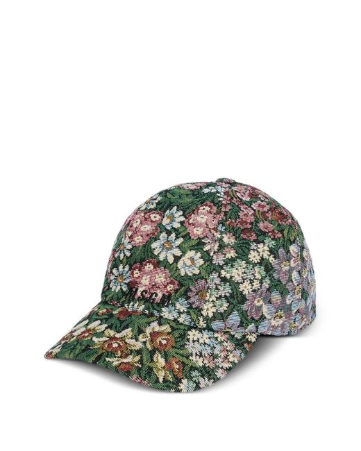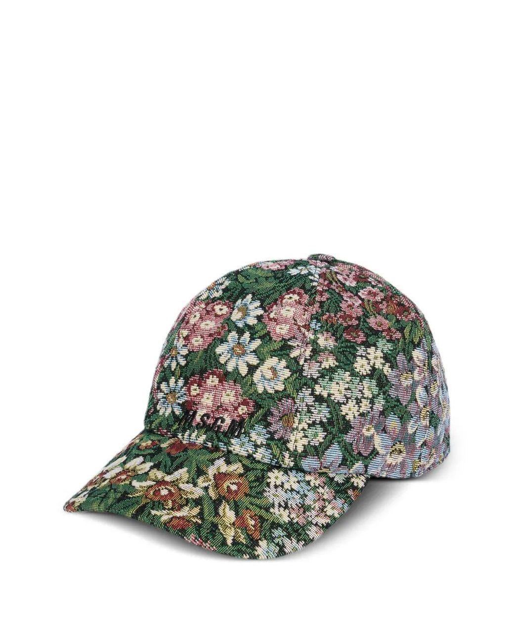 Women's Green Casquette À Fleurs