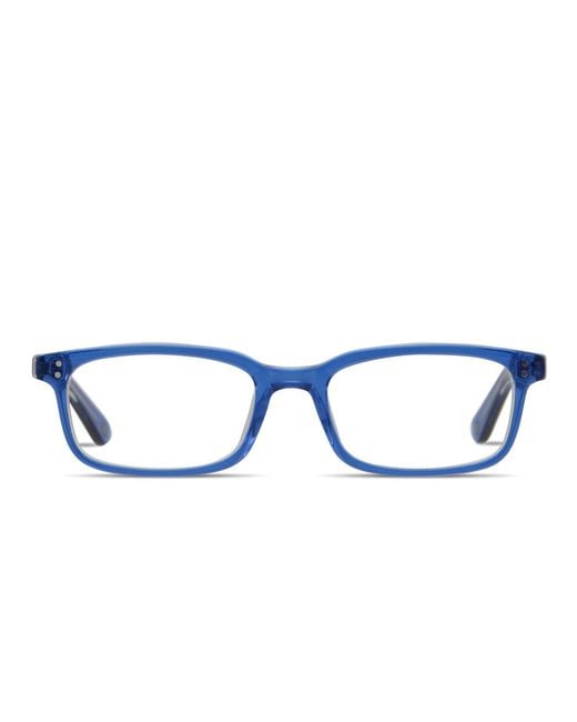 Muse Corvallis Blue, Clear - Price includes high quality frames, standard prescription lenses, shipping, free case and cloth. Small Blue/Clear Full-Rim. These Rectangle shaped eyeglasses are great for Oval/Round shaped faces. Only $84. Color: black