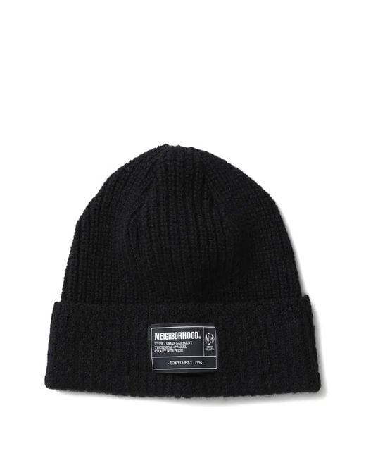 Men's Black Ribbed Label Beanie Hat