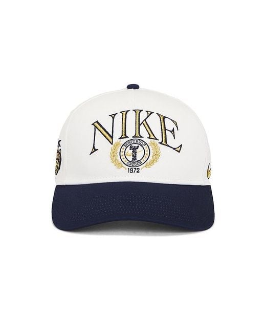 Nike Structured A-Frame Cap in Blue. - size L/XL (also in M/L, S/M) Nike Structured A-Frame Cap in Blue. - size L/XL (also in M/L, S/M) 100% cotton. Adjustable back strap. Embroidered graphics. Ventilating eyelets. Brim measures approx 3 in length OS measures approx 23 in circumference. NIKR-MA86. IH8778-133. Centered around humanity and athletic innovations, Nike believes that if you have a body, you are an athlete. From footwear to an incredible variety of clothing, Nike is about enhancing performance while looking and feeling your best. Many of their shoe styles have become rare collector's items because of their limited quantity and unique, yet classic design. Their-performance focused technologies have revolutionized athletic wear, while their exclusive fabrics such as Dri-Fit, AeroReact, and Storm-Fit highlight both function and aesthetics. Beyond apparel, Nike invests in the power of people, planet, and play with practices that seek to better serve the environment and support women in the workforce. Color: blue