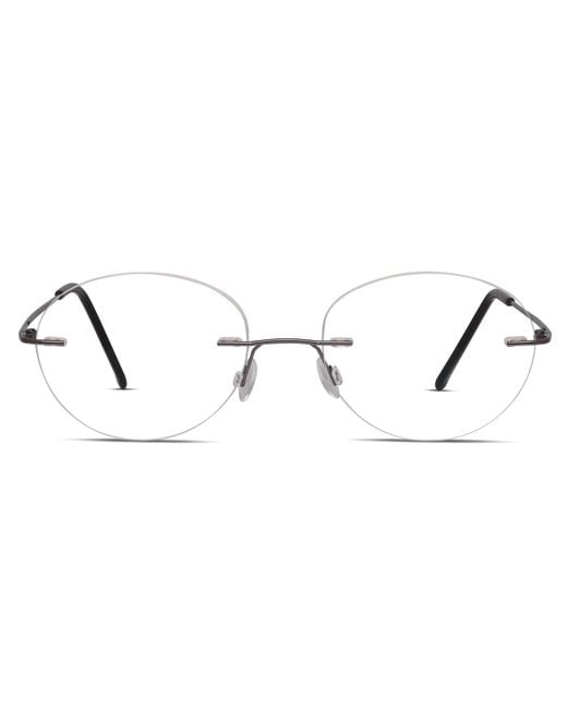 Ottoto Bellissimo Gunmetal - Price includes high quality frames, standard prescription lenses, shipping, free case and cloth. Small Gunmetal Rimless. These Oval shaped eyeglasses are great for Oval/Round/Square shaped faces. Only $96. Color: black