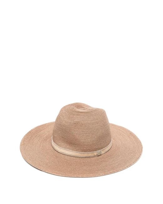Brown woven construction wide brim grosgrain ribbon trim logo plaque Size: M. Gender: Female. Material:Other fibres/Straw. Color: natural