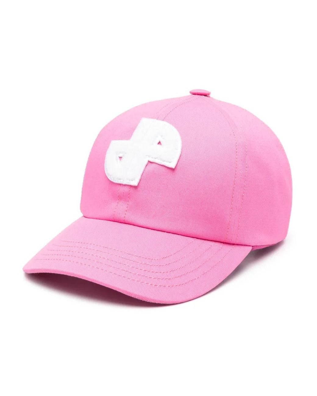 Pink cotton twill weave fabric-covered button at the crown logo patch to the front six-panel construction round crown curved peak rear elasticated band Size: S. Gender: Unisex. Material:Cotton/Acrylic/Polyester/Rayon.