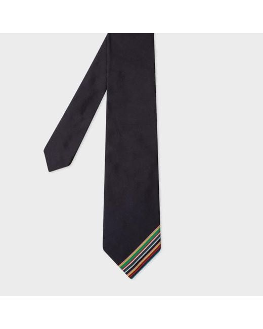 Navy Wool-silk 'signature Stripe' Scarf - Black