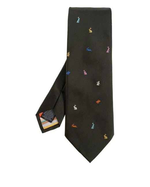 Dark green silk rabbit motif striped pointed tip Size: One Size. Gender: Male. Material:Silk. Color: black