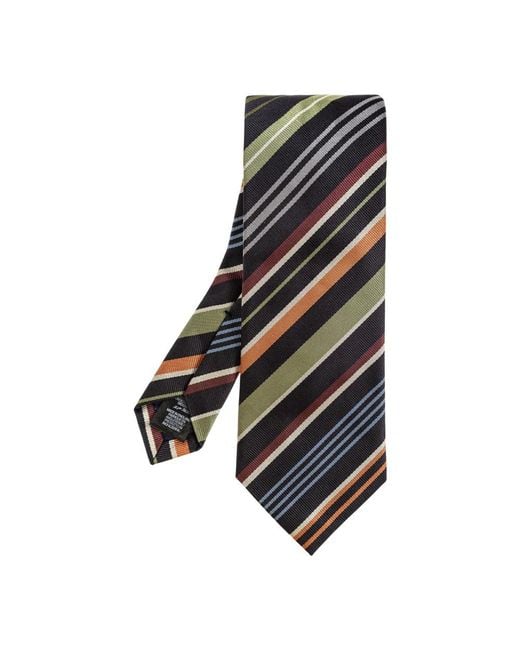 Paul Smith Silk Tie pairs a classic tapered silhouette with a bold multicolor diagonal stripe, ideal for formal and smart-casual outfits. Key attributes: Multicolor | Silk | Perfectly finished edges | Signature weave structure | Durable construction | Diagonal multi-color stripe pattern | Tapered silhouette | Subtle sheen | Dimensions & fit: Width: 8 cm | Classic tapered cut | Standard width | Composition & care: 100% Silk | Dry clean. Color: black