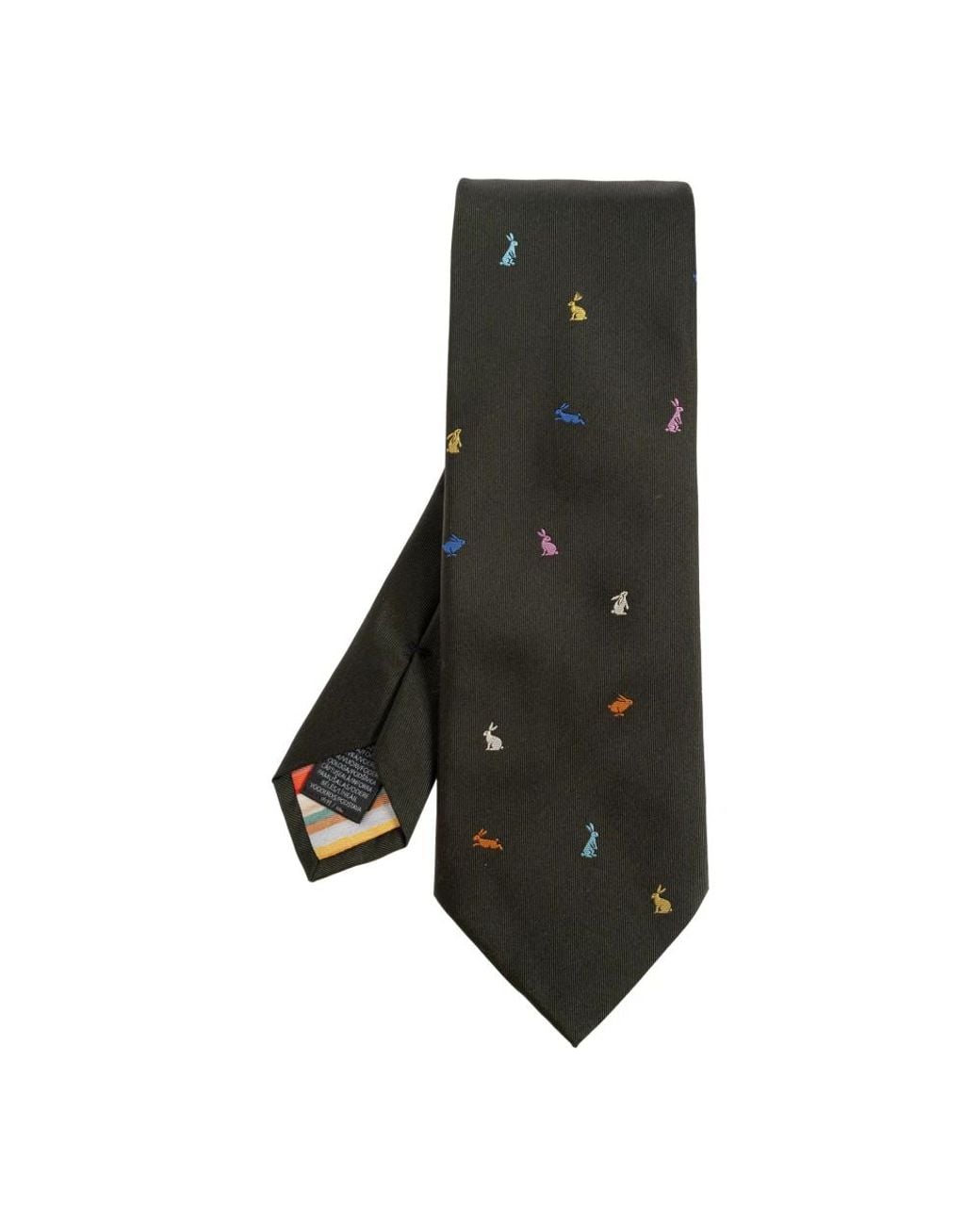 Paul Smith Emroidered Silk Tie combines luxurious silk with a playful embroidered rabbit motif, making it a refined choice for formal and smart-casual outfits. Key attributes: Green | Silk | Lightweight | Subtle sheen | Classic shape | Embroidered rabbit motif | Multicolor inner piping | Tapered silhouette | Dimensions & fit: Width: 8 cm | Composition & care: 100% Silk | Dry clean Color: black