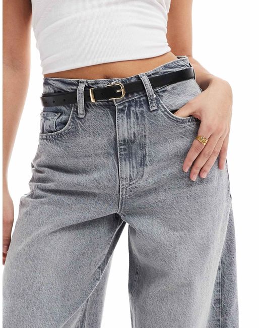 Women's Gray Skinny Faux Leather Belt