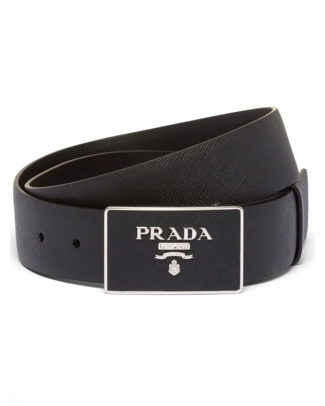 Black Saffiano leather logo-buckle detail internal logo stamp adjustable fit Size: 80. Gender: Male. Material:Calf Leather.