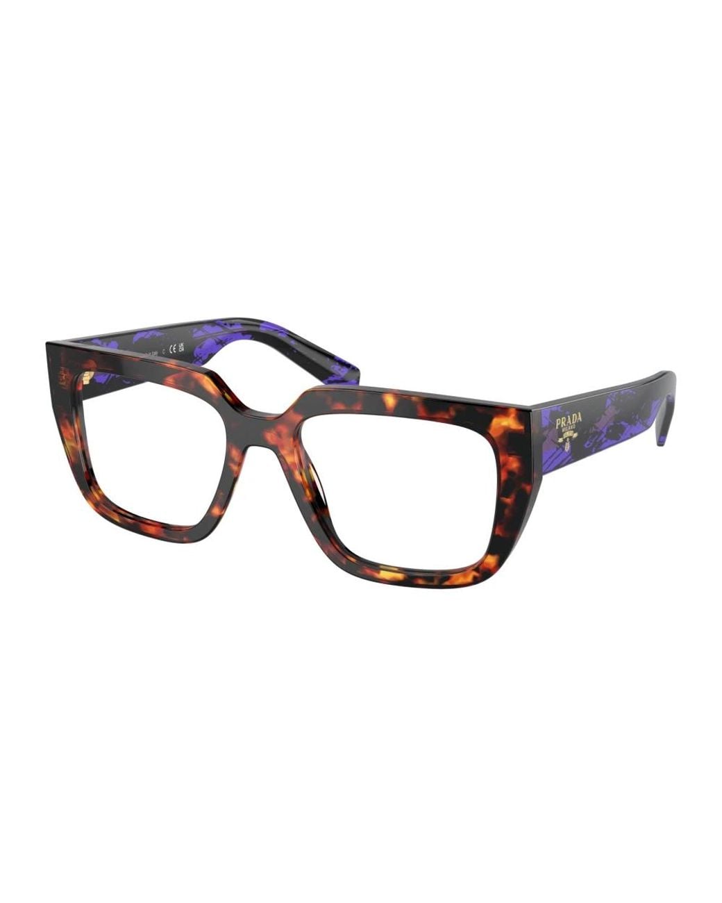 Prada A03V Optical Frame pairs a geometric silhouette with Prada's signature detailing for a modern everyday optical look. Designed in acetate, it works well as a stylish prescription frame or eyewear staple. Key attributes: Brown | Marrone | Acetate | Full rim construction | Includes demo lenses (base 4) | Comes with hard case and cleaning cloth | Geometric/square silhouette | Full-rim acetate frame | Signature logo on temples | Dimensions & fit: Lens width: 50 mm or 52 mm | Bridge: 18 mm | Temple: 140 mm | High-bridge fit | Composition & care: Frame: 100% acetate | Lens: 100% polyamide | Wipe with a clean, dry cloth. Store in the provided case when not in use. Color: blue