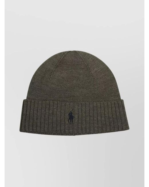 Polo Pony Embroidered Turn-Up Hem Beanie - Green