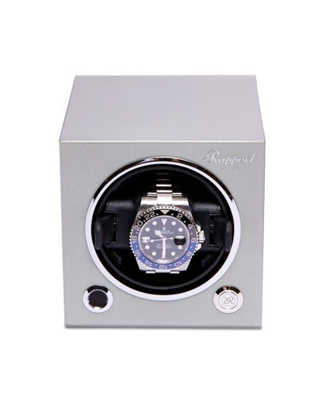 The EVOLUTION single watch winder cubes have been developed in a range of sleek, high gloss colors and designed to be collected together. The EVO cube is precision crafted from wood and applied with layers of lacquer. The soft leather cushion is fully adjustable and securely holds your watch with leather side clips. The cube offers multiple levels of control and a three direction setting. Size: 12 x 12 x 14.5cm Color: white