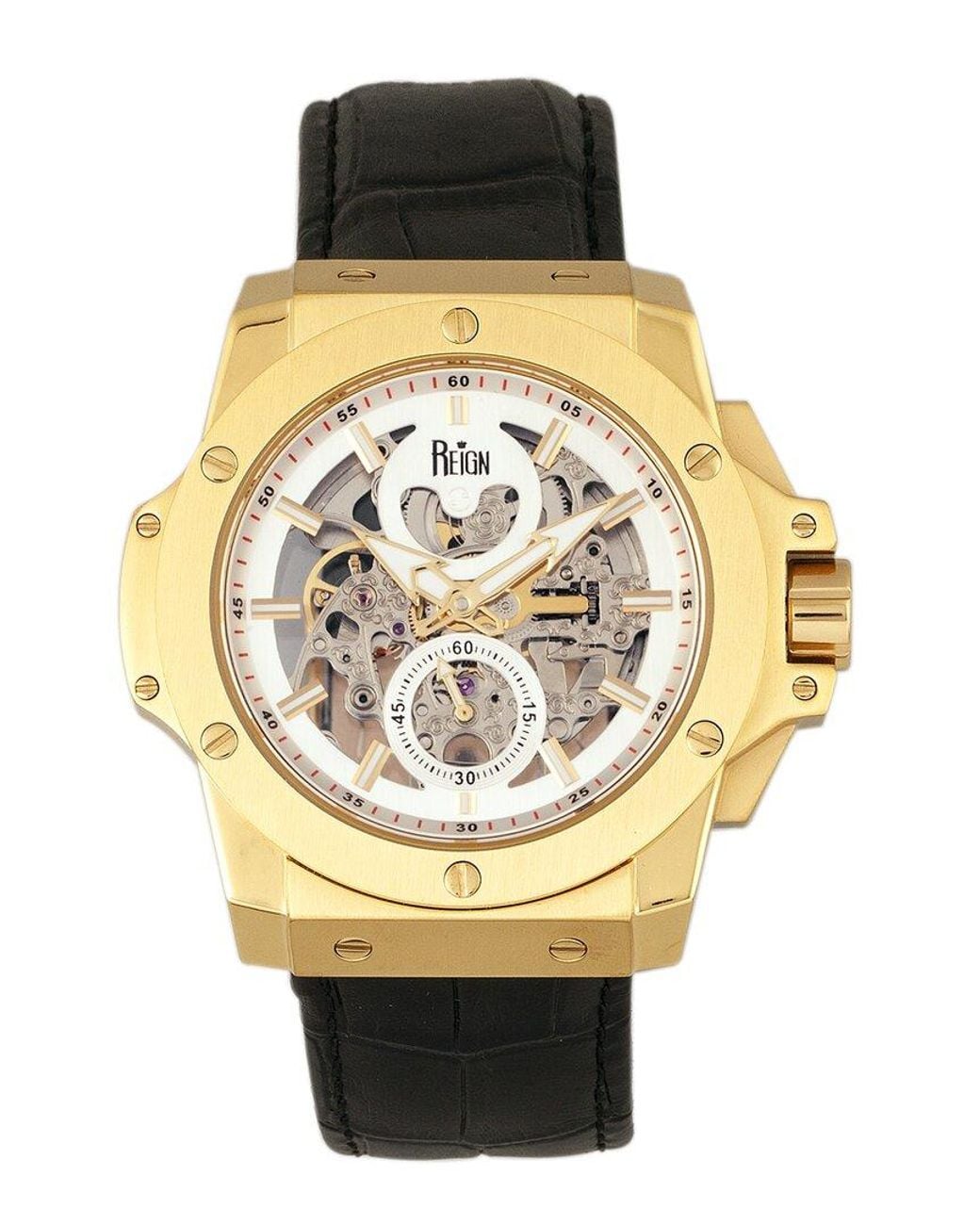 Automatic Movement: Mechanically Powered And Wound By The Motion Of The Wearer's Arm Or Manual Winding Black Genuine Leather Strap Strap Buckle Clasp Stainless Steel Bezel Encrusted With Stainless Steel Case Sapphire-Coated Mineral Crystal Push/Pull Crown Silver Dial With Luminous Black Hands Date Display Case: 51Mm X 48Mm X 13Mm Bracelet/Strap: 24Mm Wide X 9.17In Long Water-Resistant Up To 50 Meters Manufacturer's Limited Warranty It Is Customary To Treat Most Gemstones To Achieve Enhanced Color And Durability. Some Of These Treatments May Not Be Permanent, And May Require Special Care.