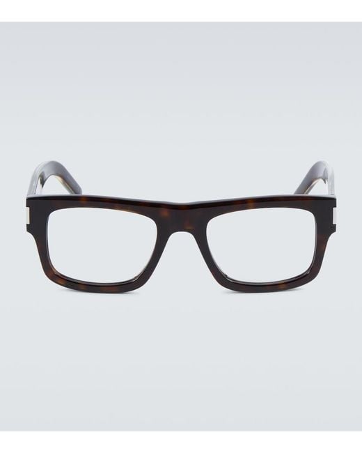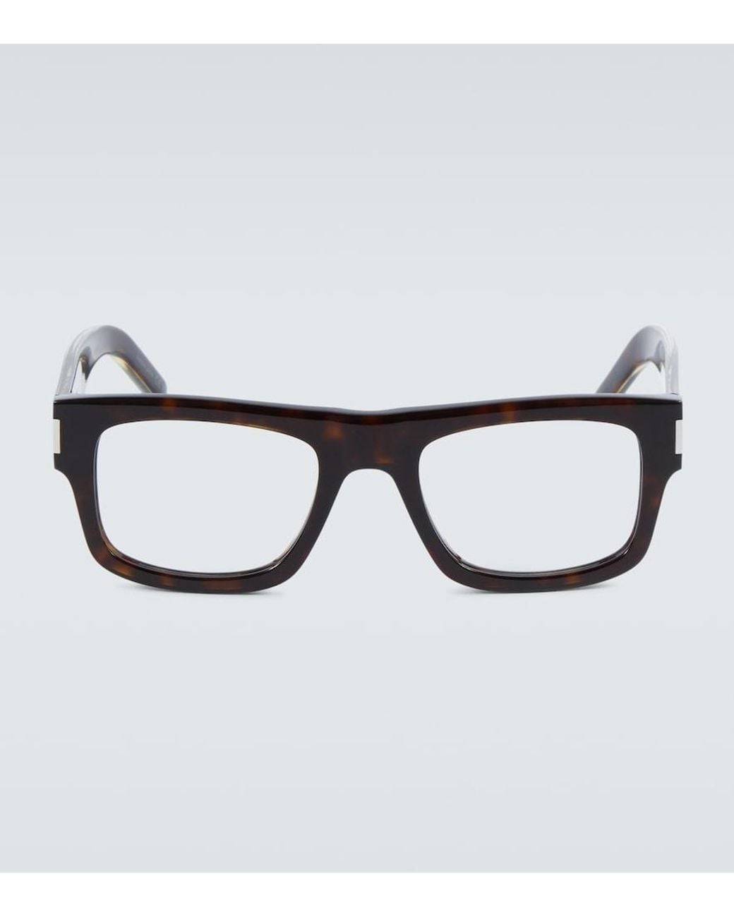 Elevate your everyday looks with these rectangular glasses from Saint Laurent. The acetate frames feature silver-toned logo-engraved accents on the sides. Spectical frames, dummy lenses, MDL: D253049~ FDA: 3011642909.