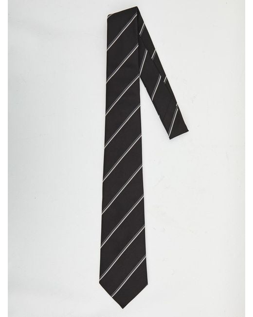 Wide tapered tie in black and medium grey. Features diagonal striped motif and chain keeper loop. Dimensions: 8 x 140 cm Size nationality: UNI. Gender: Men. Material: 100% SILK. Color: Black. Made in: Italy. Product ID: 6097150 825066 3Y002 1062. *Import tax/duty will be calculated at checkout (If applicable)