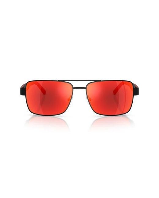 Men's Red 59Mm Rectangular Sunglasses