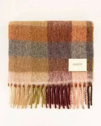 Go to FARFETCHLilac purple checked pattern fringed edge rectangle shape wrap-around style Size: One Size. Gender: Female. Material:Polyamide/Alpaca. Color: purple