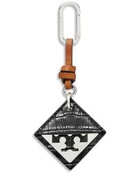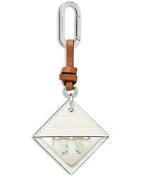Go to FARFETCHLight pink leather heart coin case key fob from tory burch. Color: pink