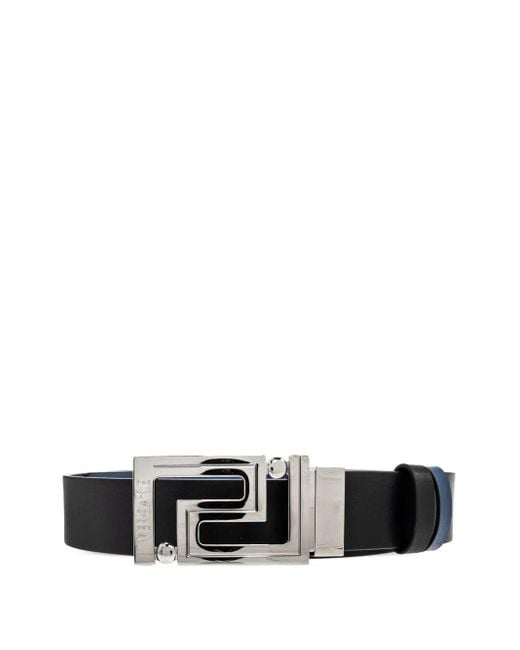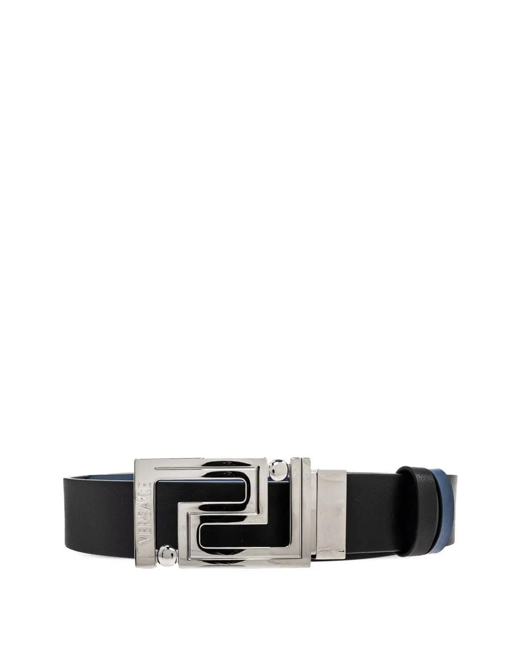 Black and blue reversible logo buckle adjustable length leather silver-tone hardware Size: 80. Gender: Male. Material:Calf Leather.