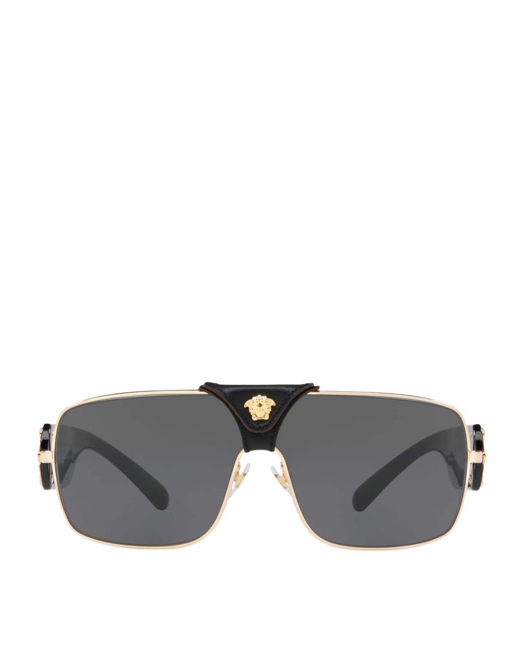 Versace’s penchant for accessories is well documented, and sunglasses are always a way to elevate any outfit. Perfectly functional with complete uv protection, this pair is inspired by policeman styles and accented with the Italian powerhouse’s iconic Baroque gold detailing at the sides. Color: gray