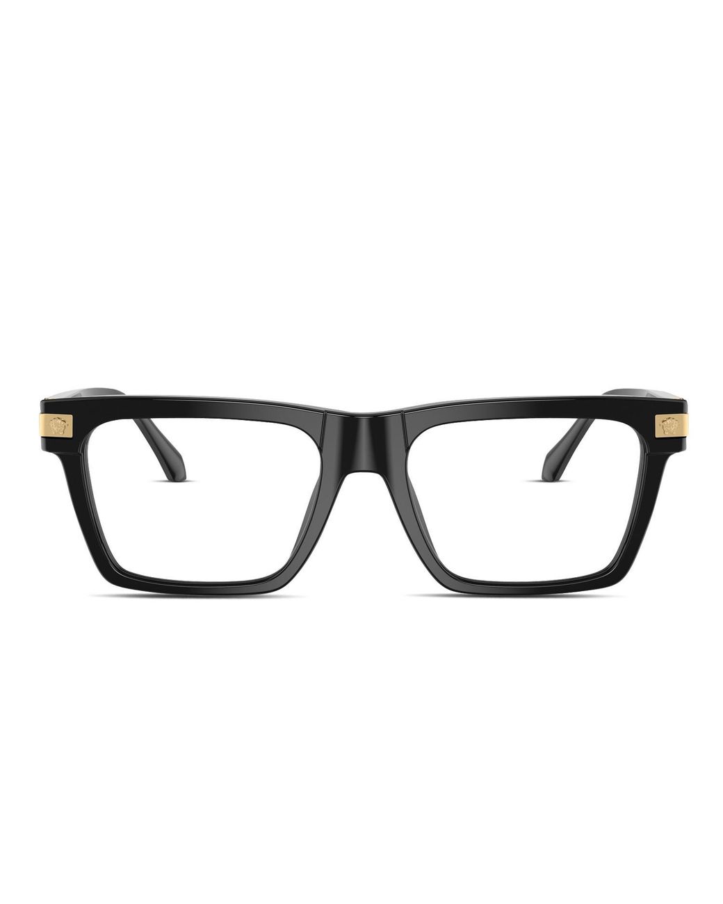 Versace VE3354 Black - Price includes high quality frames, standard prescription lenses, shipping, free case and cloth. Large Black Full-Rim for Men. These Rectangle shaped eyeglasses are great for Oval/Round shaped faces. Only $515.