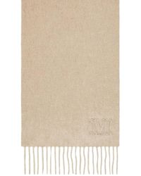 Go to FARFETCHCamel cashmere fabric ribbed texture logo embroidery long cuff Size: One Size. Gender: Female. Material:Cashmere. Color: natural