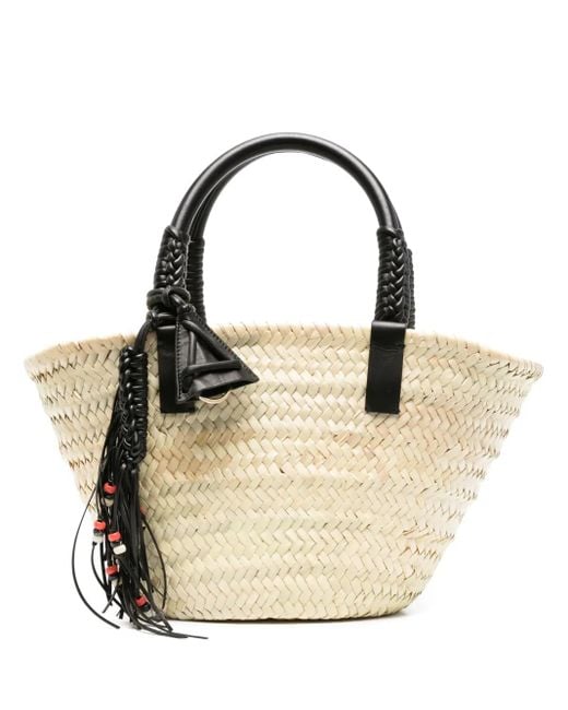 Light beige/black raffia/lambskin interwoven design monogram leather tag beaded large tassel charm braid detailing open top two rolled top handles flat base unlined internal logo patch main compartment removable pouch This piece comes complete with a protective dust bag. Size: One Size. Gender: Female. Material:Raffia/Acrylic/Lambskin.