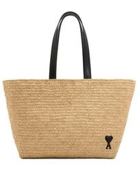 Ami Paris Women's Natural Logo-Embroidered Raffia Tote Bag