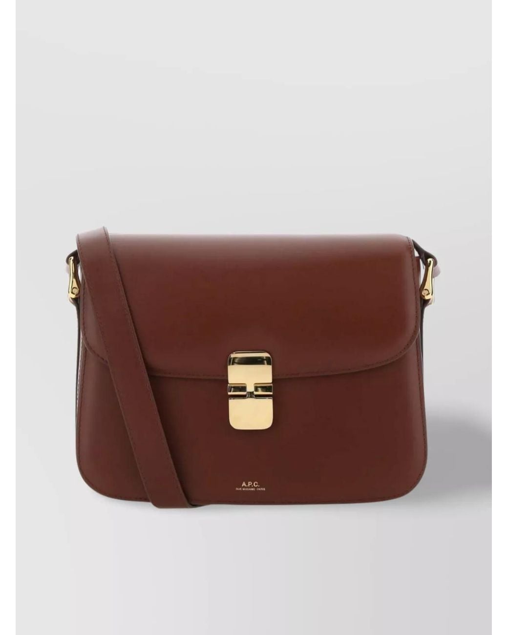 Adjustable shoulder strap | Gold-tone hardware | Front flap closure Color: brown