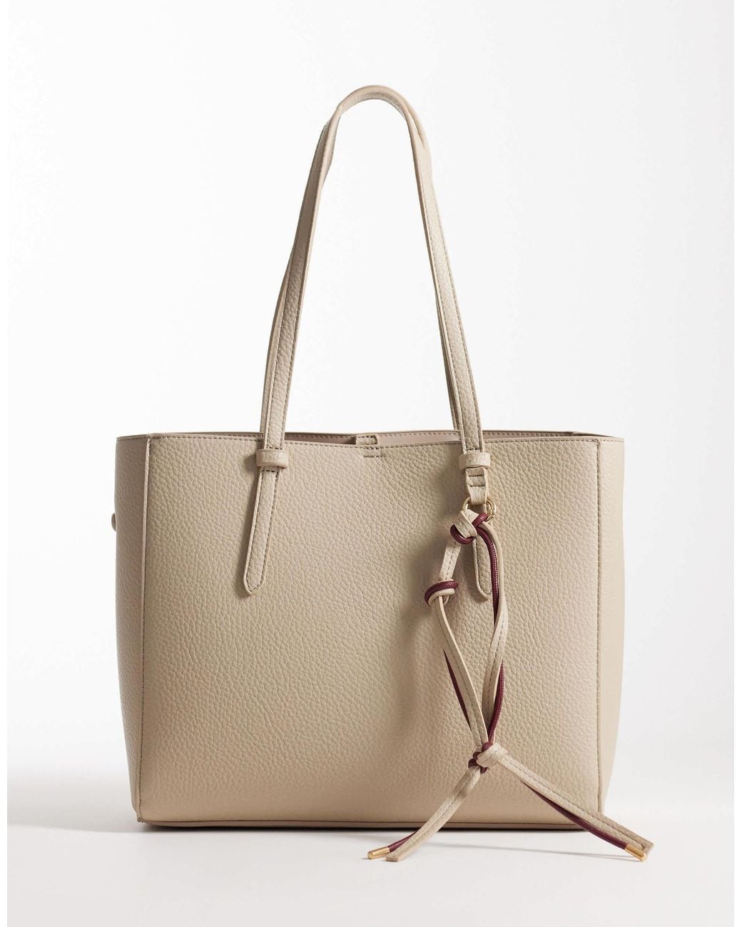- Textured Multi Compartment Tote Bag With Detachable Bag Charm