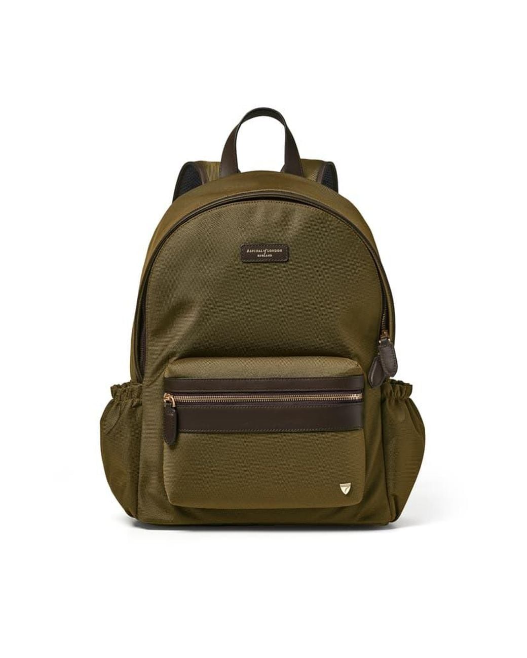 Contemporary and masculine, our Men's Backpack is a stylish must-have for commutes and day trips. Handcrafted from durable, lightweight, tight weave nylon canvas accented by a premium full-grain leather trim, the deceptively spacious design is ready for whatever the day holds. To the front, a large zip pocket allows ample room for those quick-access essentials, such as your wallet, keys, or headphones. Inside, a padded laptop pocket ensures the secure storage of your tech, while a further zip pocket makes a convenient space to hold easily lost items. Perfect for life on the go, our Men's Backpack wears comfortably, featuring fully adjustable padded straps. Color: green