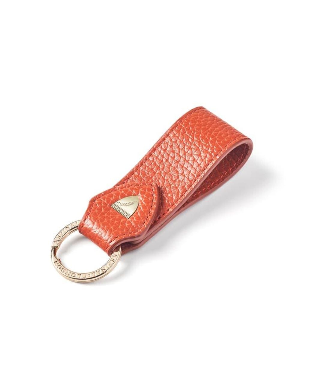 Add a touch of luxury to any key set with our Small Leather Loop Keyring. Handcrafted from the finest full-grain leather, our signature shield rivet and engraved branding on the split-ring provide an elevated finish, while the compact and lightweight loop design ensures it slips easily into your pocket. Create a thoughtful gift for a loved one by having it personalised with their initials. Color: orange