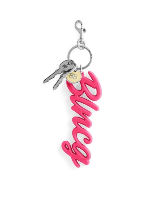 When it comes to its graphic identity, Balenciaga is fearless, adopting the streetwear approach of endless reinvention, with surrealist parodies of everyday logos a common occurrence. Here, for example, the brand plays on the classic silicone name keyrings that frequent souvenir stores, presenting a bb keying with a Blncg charm. Color: pink