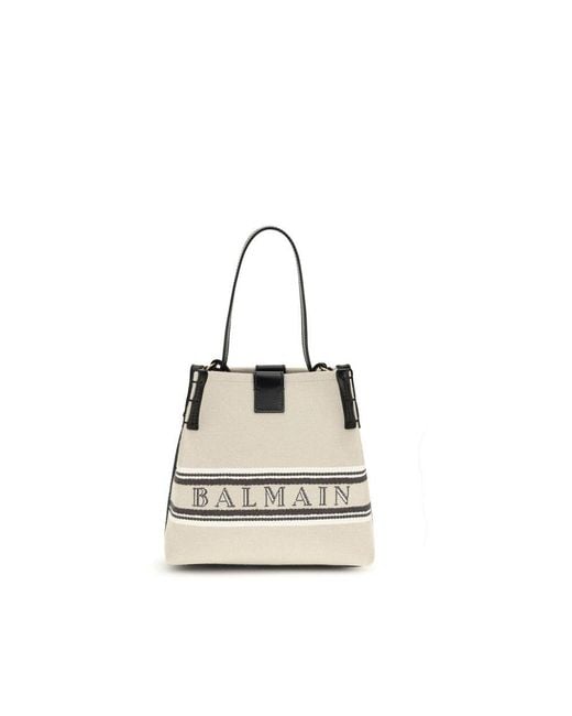 The Release Bucket Bag in canvas and leather by Balmain is the perfect accessory for those seeking elegance and practicality. Featuring an adjustable strap, it can be worn over the shoulder or across the body, while the handle allows it to be carried comfortably by hand. The snap button closure ensures security, while the reinforced sides provide added strength and structure. It combines sophisticated design with functionality, making it the ideal everyday companion. Season: SS26Dimension: 22x23x10Composition: 100% Cotton. Color: white