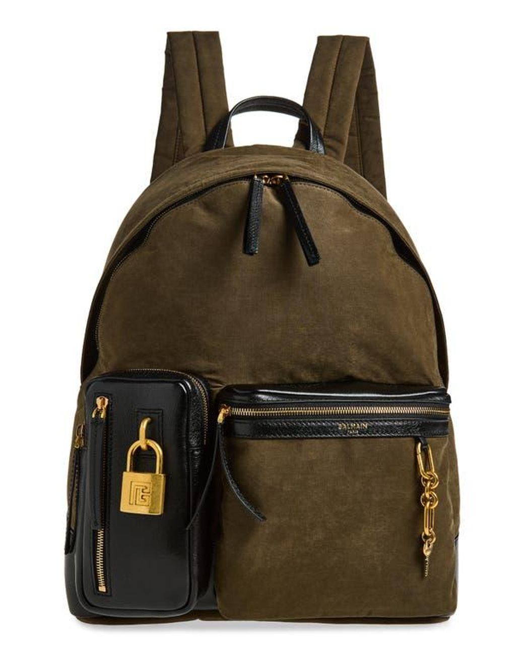 A logo-engraved padlock adds an eye-catching focal point for this canvas backpack designed with plenty of pockets to organize your commuting essentials. Padded shoulder straps offer a comfortable carry. Color: brown