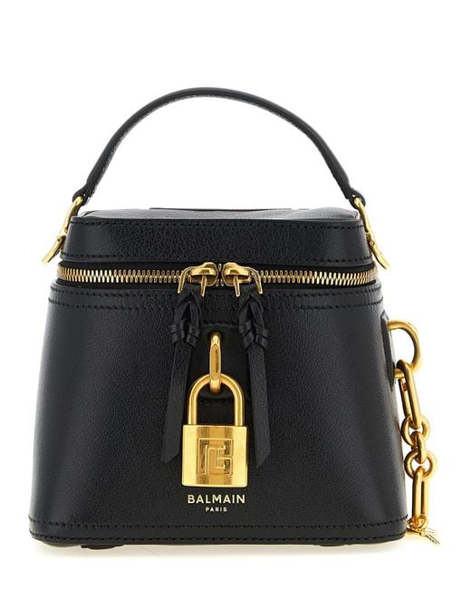 'Pulse Vanity' calf leather handbag with front padlock detail and removable side metal snap hook, zip closure, fixed handle, front embossed logo, rigid base, canvas lining, adjustable and removable shoulder strap. Composition: 100% calfskin leather (Bos Taurus) Color: black