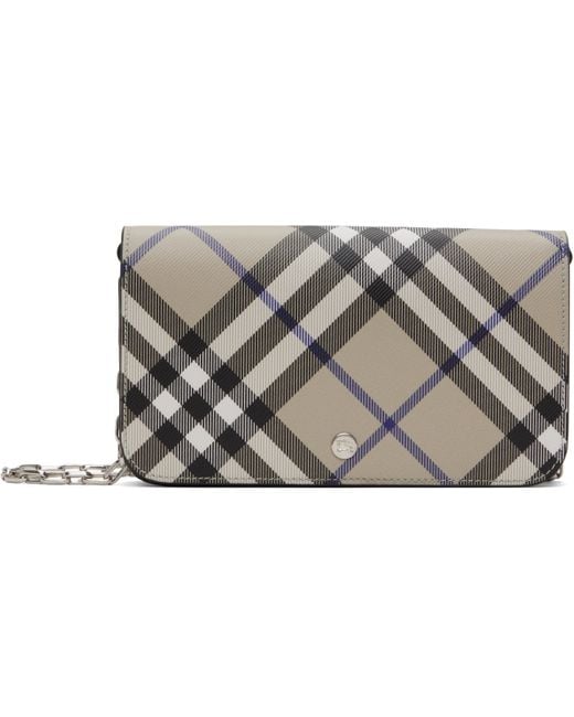 Buffed faux-leather shoulder bag in beige. · Check pattern and hand-painted edges throughout · Detachable cable chain shoulder strap · Logo-engraved hardware at face · Zip pocket at back · Press-stud flap closure · Twelve card slots · Two note slots · Fully lined · H4.75 x W8 x D2 Supplier color: Lichen