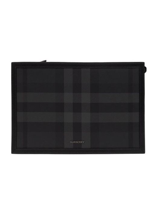 Men's Black Frame Logo Plaque Checked Clutch Bag