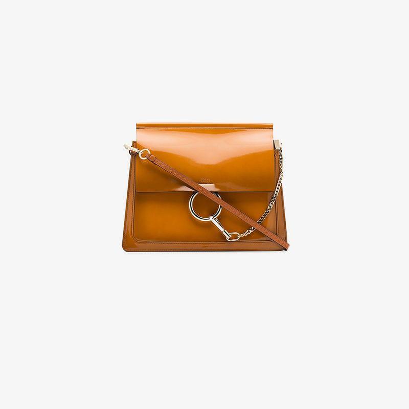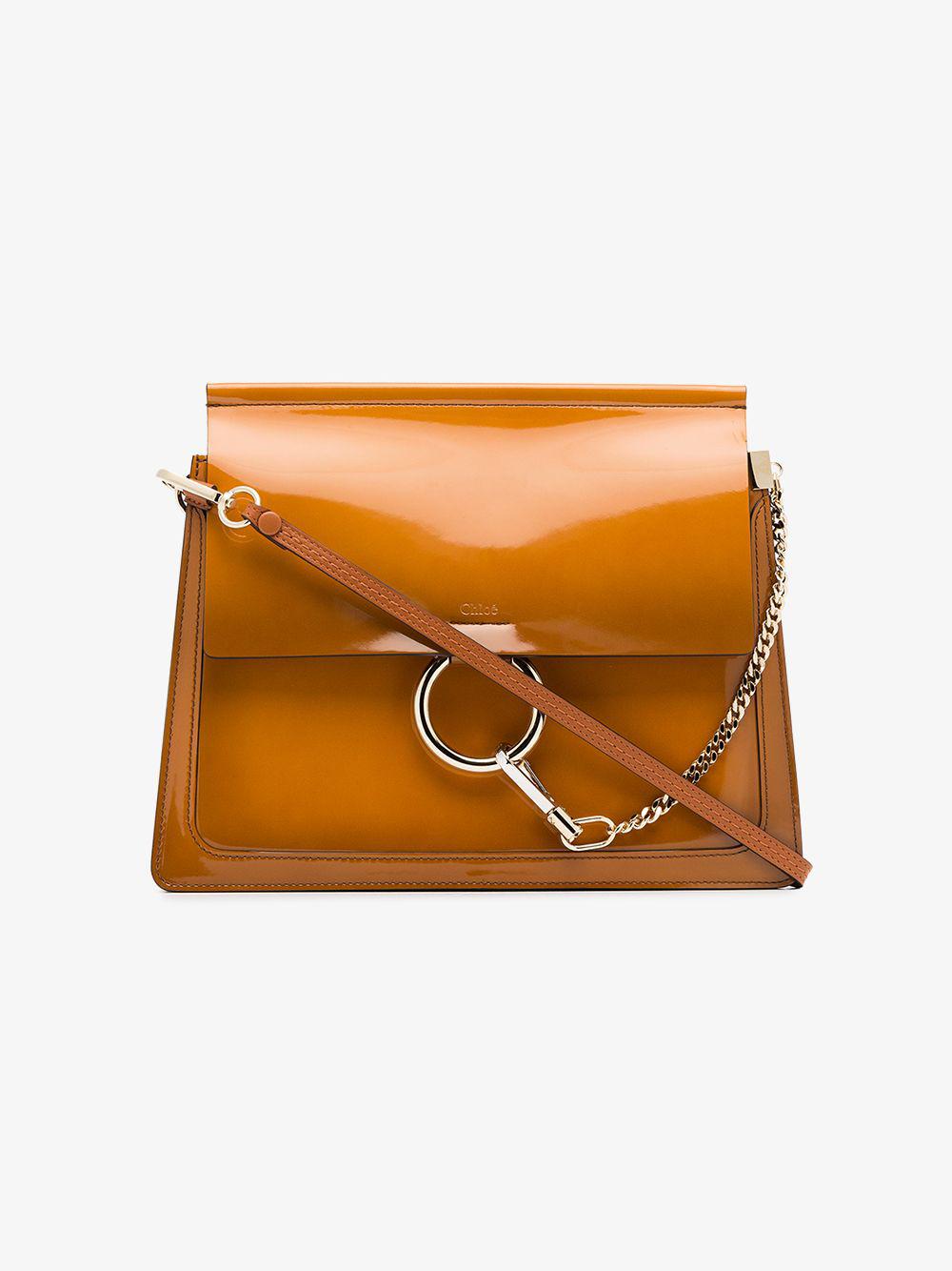 Caramel Brown Faye Patent And Leather Shoulder Bag