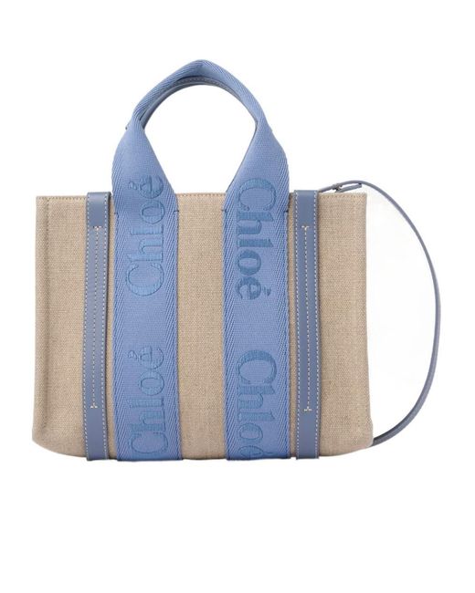 It comes with two short handles, a detachable and adjustable long shoulder strap, and is decorated with Chloe logo embroidery. Color: blue